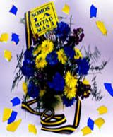 Increíble combinación de pasión con clavelinas, flores mixtas y mucho "Azul y Oro"